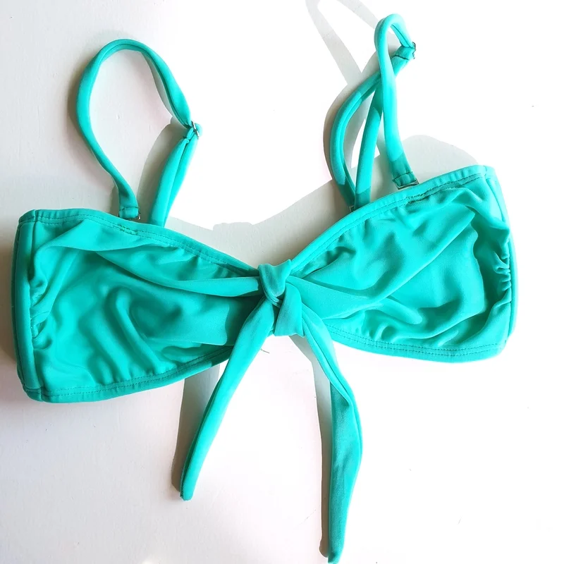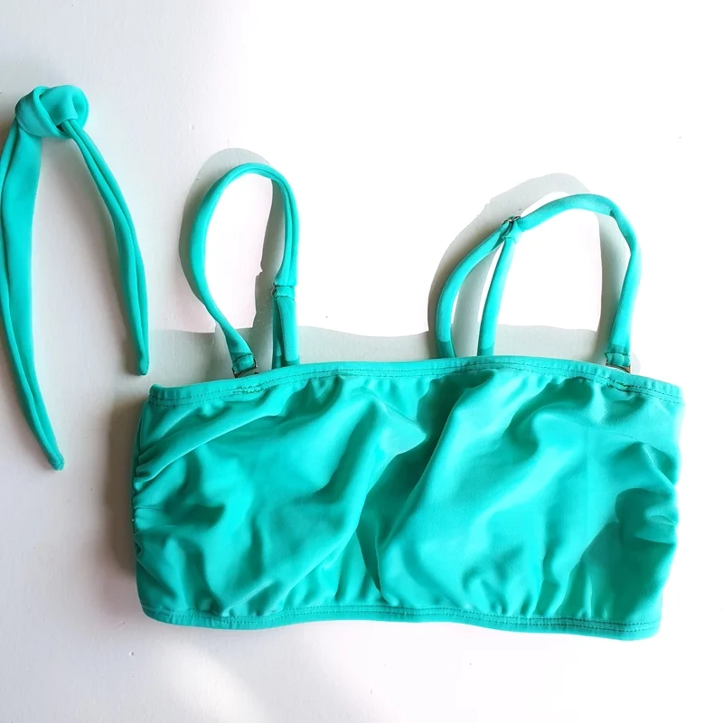 Bandeau recto, con ballenas a los costados para mejor sujecion. Viene con breteles regulables y desmontables y con un lazo para atar. Tiene bolsillo para tazas Color verde esmeralda