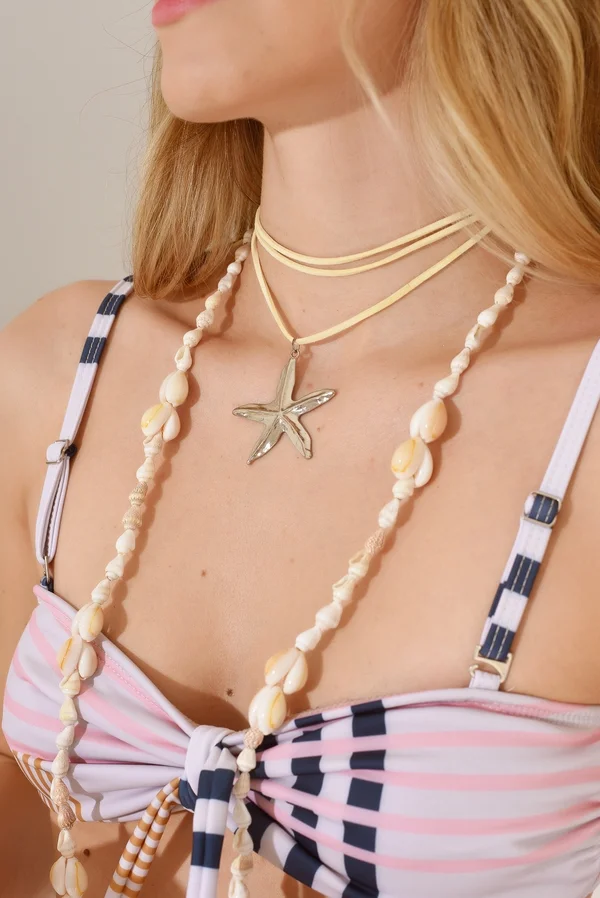 Se puede regular el largo y usar de diferentes formas. Da dos vueltas como choker.