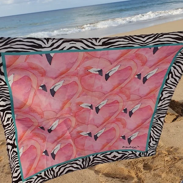 Pañuelo de seda de 45×45 cm aprox Mix de estampas animal print y flamencos