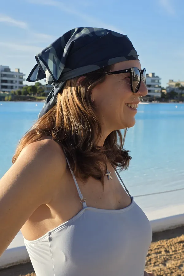 Pañuelo de sedita de 70×70 cm aprox. Estampa Nerida. Tamaño ideal para usar como bandana o atado a la cintura (última tendencia!)