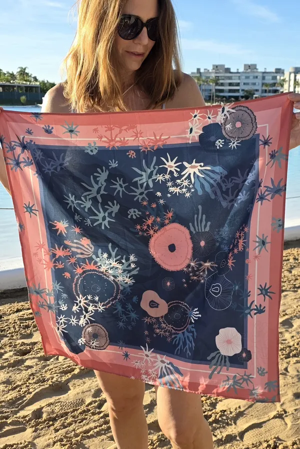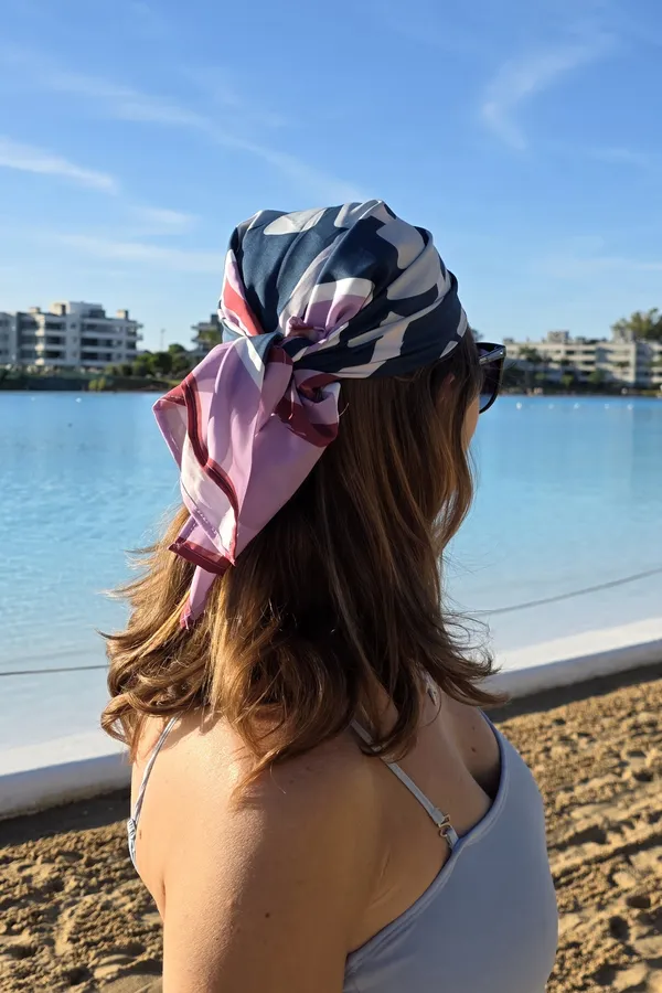 Pañuelo de sedita de 70×70 cm aprox Combinación de estampas Palma y Formentera